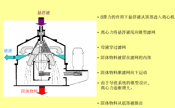 設(shè)備簡介:LX系列全自動(dòng)離心-下卸料-導(dǎo)流式離心機(jī),是我公司技術(shù)成熟的一種離心過濾設(shè)備。該離心機(jī)為導(dǎo)流式錐形轉(zhuǎn)鼓離心機(jī),其獨(dú)特的導(dǎo)流裝置,可以調(diào)整物料在離心機(jī)內(nèi)的停留時(shí)間,使固體物料含液量降到最低,對于固體顆粒大于30~40μm的物料都能取得令人滿意的效果。實(shí)現(xiàn)了自動(dòng)連續(xù)離心下卸料,用作過濾離心脫液,產(chǎn)品廣泛應(yīng)用于電力環(huán)保、礦山、化工、冶金、造紙、食品、制藥及煤炭等行業(yè)。