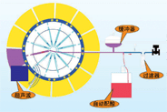 吸漿區(qū):工作時浸沒在料漿的過濾板在毛細作用下結合真空壓力,表面吸附成一層濾餅,濾液通過濾板進分配閥至排液罐。